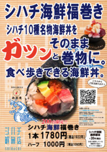 2026年 シハチ海鮮福巻き!ご予約フォームはこちらから! 2026.01.10 お知らせ 恵方巻の時期が近づいて参りました! 下記、リンクよりご予約受付しておりますので、 皆さま、シハチ海鮮福巻きをご堪能くださいませ! お客様御注文フォーム▽▽ シハチ鮮魚店 2026年恵方巻お申込書 <前の記事年末お刺身盛合せ・お寿司盛合せ!テイクアウトのリンクはこちらから!